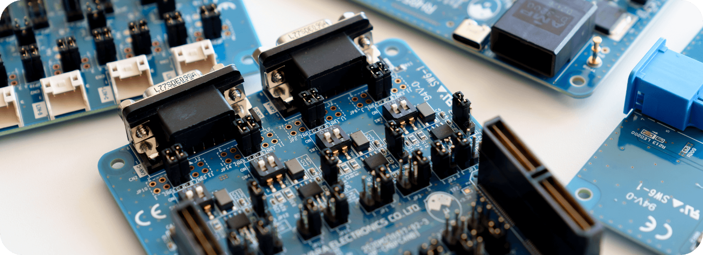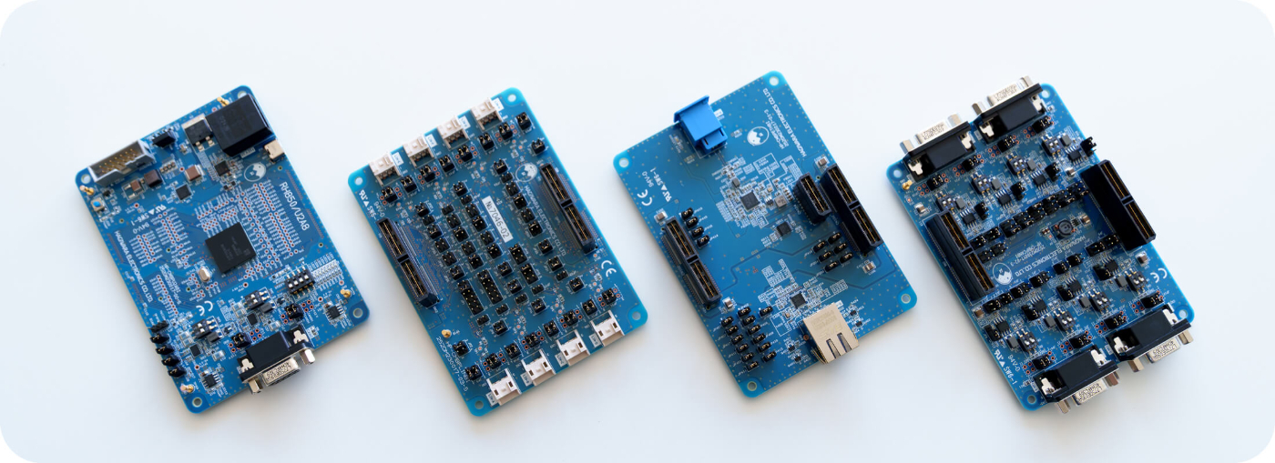 HIYOKOシリーズは、萩原エレクトロニクスが開発・提供する評価・検証向けのオリジナルボードです。車載用途で求められるCAN‑FD通信や車載Ethernet通信などの仕様を備えており、お客様の評価作業やアプリケーション開発をスムーズに進めるための基盤としてご活用いただけます。また、オリジナルボードを軸にお客様の要望に沿った拡張ボードや搭載ソフトの設計・開発・評価なども技術サポートし、お客様の試作・検証フェーズにおける課題解決をトータルでサポートします。