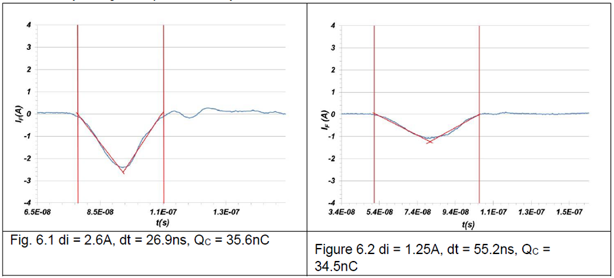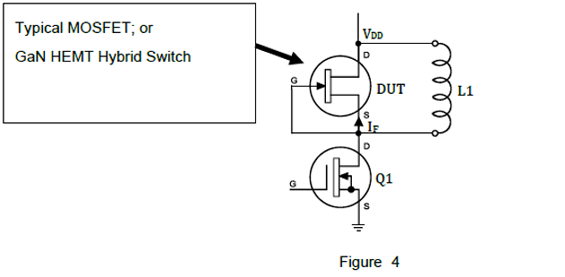 次に、Q1をターンオフし、インダクタ電流が流れ続けようとしてDUTのソースからドレインに電流が流れます。